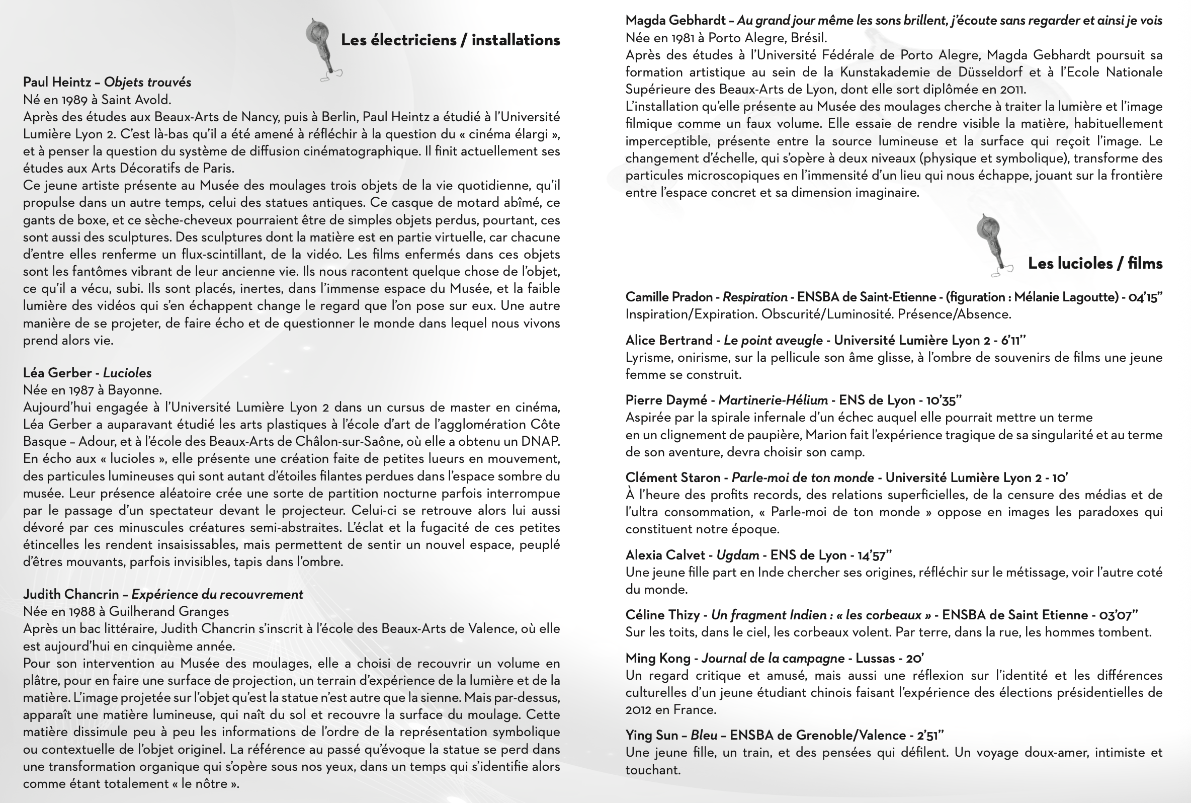 Diplomée du DNAP en 2011 puis du DNSEP en 2013 à l'école des Beaux-Arts de Valence (26), formée ensuite en 2019 (certificat d'état RNCP niveau 2) chez Profac, centre de psychologie appliquée et d'art-thérapie contemporaine. Je suis installée en Nord-Ardèche où je travaille dans mon atelier, j'enseigne parallèlement en art et interviens dans diverses structures, sur des projets artistiques auprès de différents publics.